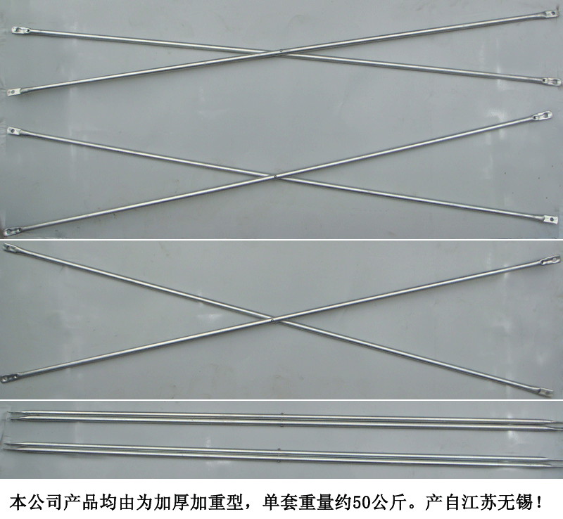 斜拉桿是縱向連接每二塊移動腳手架門架的交叉式撐架。兩交叉式預制構(gòu)件正中間鉆好圓洞,用地腳螺絲固定不動,可轉(zhuǎn)動有利于運輸和安全。預制構(gòu)件兩側(cè)擠扁一部分鉆好銷孔,組裝時與門架上的鎖銷鎖牢;